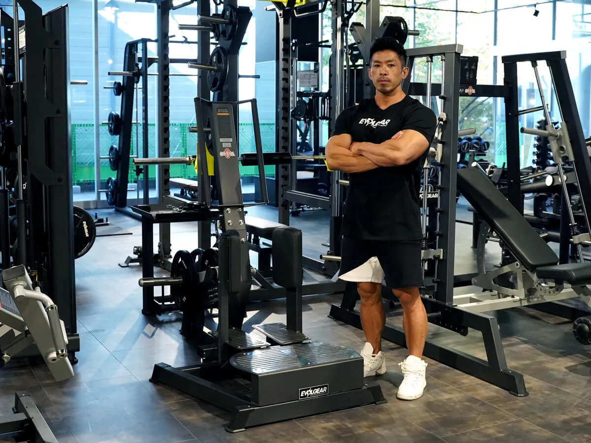 これは女性には大人気のマシン!もちろん男性もコンテストに出るような選手は大臀筋までトレーニングをやり込む必要があるよね。通常のアブダクションマシンは座って行うトレーニングが多いんだけど、このマシンはそれを立って行うことによって大殿筋・中殿筋への刺激が抜けにくい仕組みになっている。また、膝の角度を変えることによって、自分で効かせやすい角度でトレーニングすることができる。そしてこの前方にあるバーも長めの設計になっているので、身長の高い人から低い人まで刺激が抜けずに、確実に効かせることができる素晴らしいマシンです。