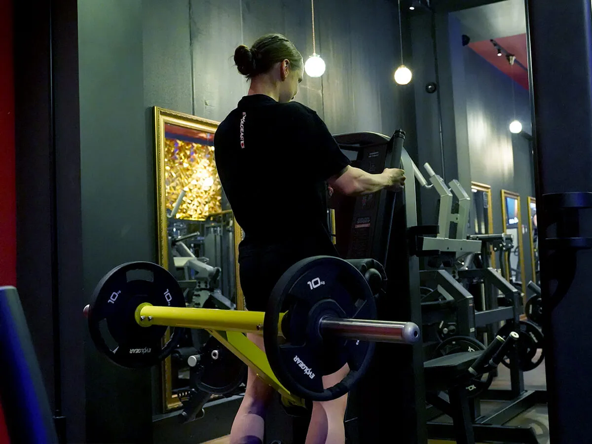 通常のヒップスラストは仰向けに寝た状態でやるトレーニングなんですけど、このマシンはそれを立った状態でやることで余計な腰への負担を減らしながらお尻や腿の裏に刺激を与えられるマシンです。大きな特徴としてはグリップ。グリップを握って体を支えながらトレーニングするのですが、グリップの掴める幅が大きいので身長や体格に合わせて使うことが出来ます。小柄な女性から背の高い男性まで幅広く対応できるようになっています。また、体格に合わせてパッドの位置も調節が可能ですので、こちらも男女や身長を問わず使えるような設計になっていると思います。さらに非常にダイレクトに効いてくるので効果が高いマシンだなと感じました。最初に話した通り、この種目は通常寝た状態で腰にバーやパッドを当ててトレーニングするのですが、それだとどうしても骨盤が痛い、当たってる部分が痛いという事があるのですが、このマシンはそういった問題が一切なく不快感なくトレーニングできる素晴らしいマシンです。