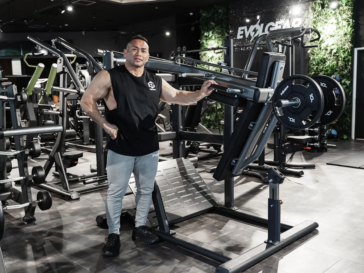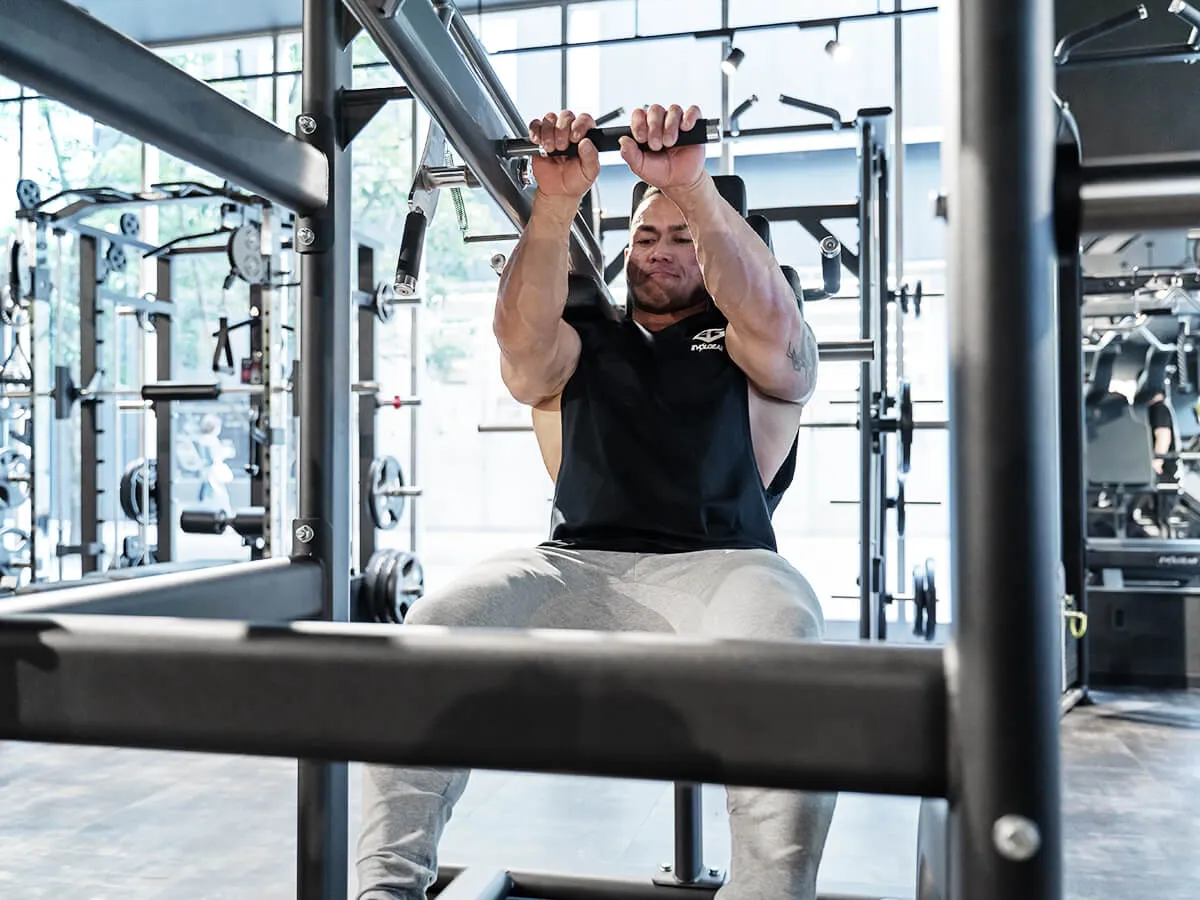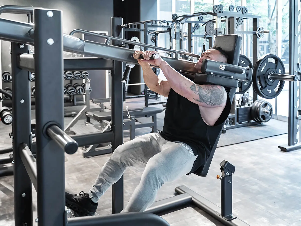 振り子の様な軌道で可動域が広く設計されている為、安全に最大限まで負荷をかけてトレーニングを行う事ができます。