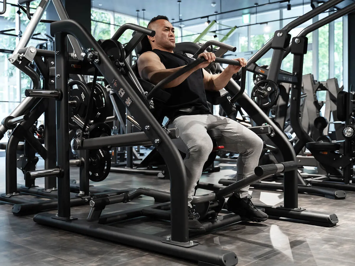 ハンドルと肘パットにより負荷が逃げづらく、効果的に対象部位に効かせる事が可能です。 マシン自体の可動域も広い為、最大限まで負荷を掛ける事ができます。