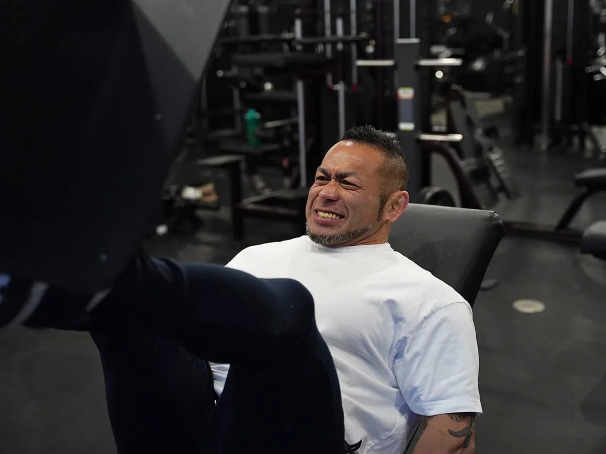 通常の45度のレッグプレスと比べると角度が少しロータリー式(円を描いて可動する)になっているこちらのマシン。負荷としては下がるに従って重くなり、上がるに従ってやや軽くなるので、膝と股関節に対する負担がかなり軽減される。レッグプレスで膝・腰・股関節に不安がある場合は、このレッグプレスだと関節に対する負担が少なくてスムーズに大腿四頭筋に負荷をかけやすい。そして注目してほしいのはパッド。これは非常に分厚い作りになっていて、とても座りやすい。そしてグリップも握りやすく、ストッパーの操作もしやすく取り扱いが簡単。足は力が強い筋肉だし、このマシンは関節に対する負担が少ないので高負荷でもトレーニングしやすい。動きもスムーズで、無理なくレッグプレスが出来る優れたマシンだと言える。