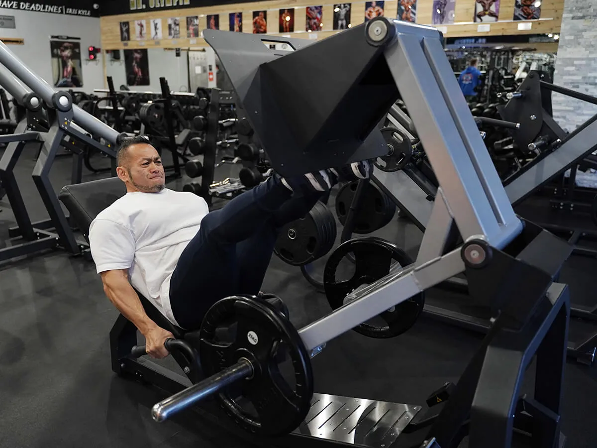 伸展動作と共にフットプレートが最適な角度に稼働するよう設計されており膝と股関節に対する負担を大きく軽減します。大きなフットプレートは足の位置に応じて細かいターゲット設定が可能となり大腿四頭筋、ハムストリングス、臀筋のトレーニングに効果的です。
