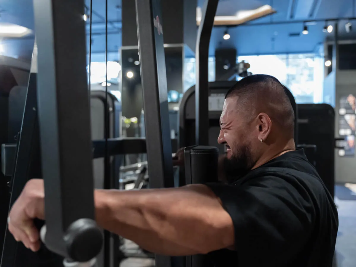 他のマシンと違う大きな特徴は、EVOLGEARのリアデルトペックフライが持つ可動域の広さです。大胸筋・三角筋後部ともに大きな可動域を確保でき、さらにアームは腕の長さに合わせて微調整が可能。ポジションによって曲げ伸ばしを変えることで、胸や肩への効かせ方にバリエーションを持たせられます。シートポジションも細かく調整でき、自分の体格や狙いたい部位に合わせたフォームをしっかり取れる設計です。そして特筆すべきは背もたれのパッド。半円柱状になっているため、フラットな背もたれよりも肩甲骨を寄せやすく、大胸筋を強くストレッチさせられる構造になっています。その結果、大胸筋への伸張刺激が大きく、効かせやすさが格段に向上しています。非常に使いやすく、僕自身も特にお気に入りのマシンです。