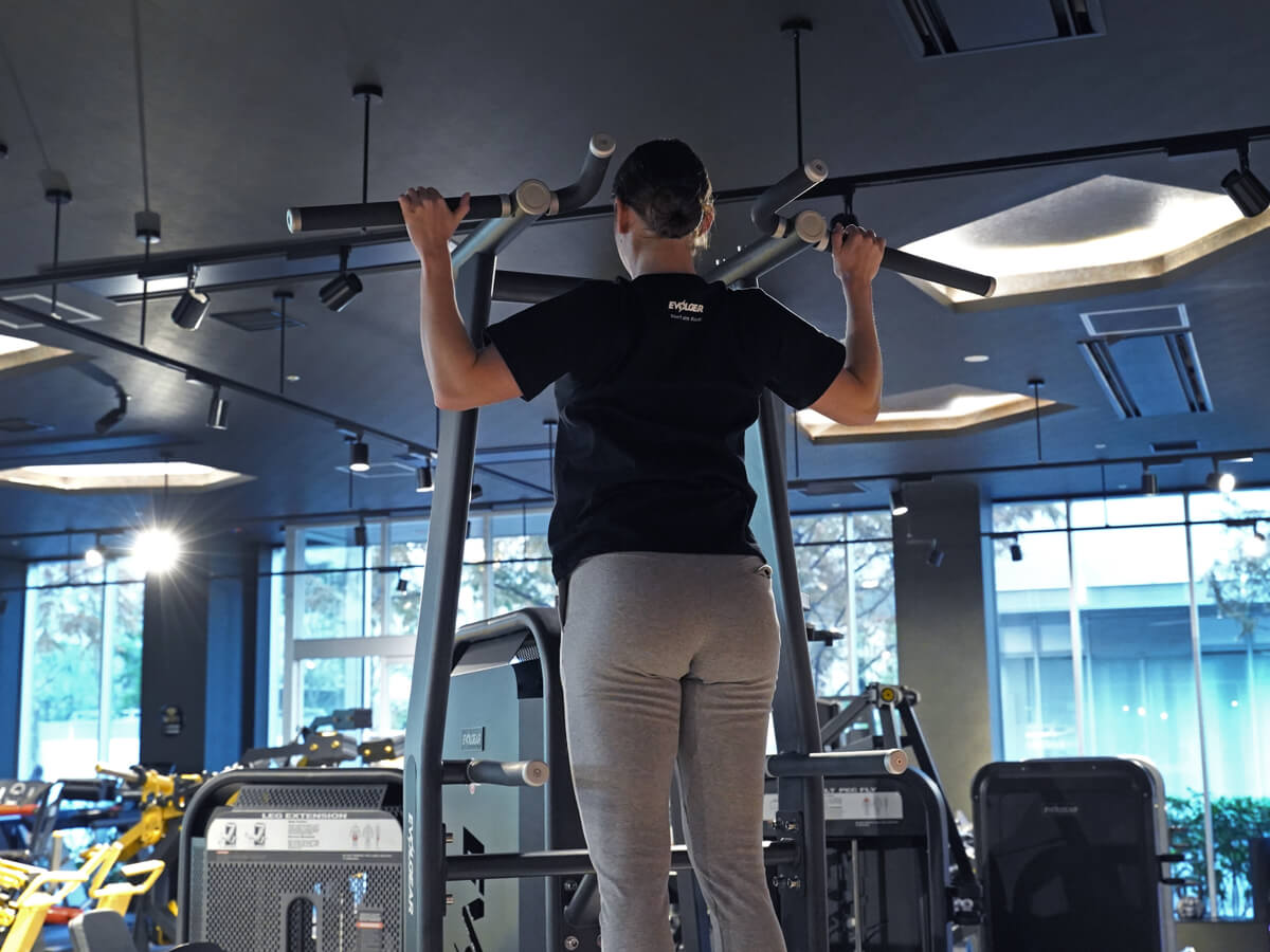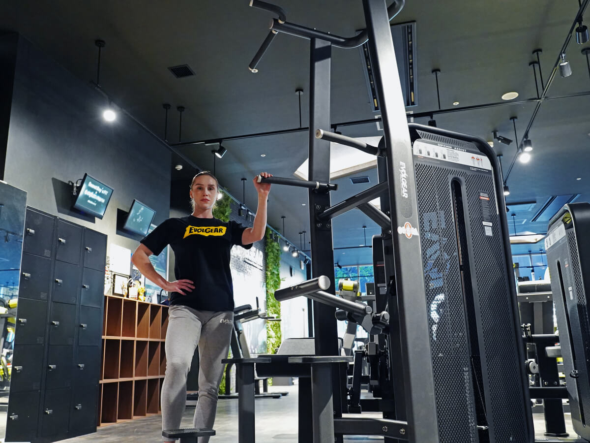 このディップ&チンアシストを使うと、トレーニングの幅がとても広がります。私はチンニングをかなりやり込んでいて、背中のトレーニングにもはや欠かせない種目です。もちろん私は自重でもトレーニングできるんですが、追い込みすぎたときや初心者の方など、アシストがないと懸垂が出来ない場合はこのアシストを使って頂いてトレーニングすることが可能です。ウェイトスタック式になっているので、荷重を調整も簡単。もし自重だったり、さらに重量を自身の身体につけてトレーニングしたい場合は、アシストペダルを畳んで自由にチンニングを行うことも出来るので、このマシンは本当にマルチファンクショナルに使えます。チンニングだけではなく、もちろん上腕二頭筋のトレーニングに欠かせないディップスも可能です。私は三頭筋がそんなに強くないので、サポートを使って追い込んだりもしています。チンニングバーはナローとワイドの2パターンあるので、様々な種類のトレーニングも出来ます。ディップスに関してもハンドルの幅調整ができるのはありがたいですね。このマシンは色んな身長の方が使えるように設計されているので、女性でもシニアの方でも、もちろん背の高い男性トレーニーでも問題なく使うことが出来ます。またマシンデザインがとてもおしゃれなので、どんなジムでもマッチできそうなマシンです。
