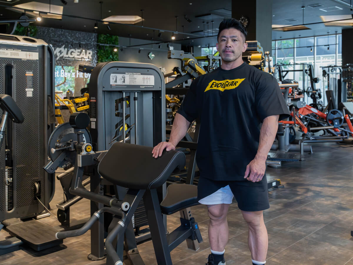 これは上腕二頭筋と三頭筋をこれ一台で鍛えることができるマシンです。ピンを引いて調節するだけで二頭筋・三頭筋とターゲットを簡単に変えてトレーニングができます。つまりスーパーセットもすぐに行えますし、またウェイトスタック式なのでピンですぐに重さを変えることができるからドロップセットもできる。プレートを付ける手間がなく、お手軽にトレーニングすることが出来ます。シートも高さ調節が可能になっているので、身長に合わせてトレーニングすることが出来ます。マシンで軌道が安定しているので、初めての方でも対象筋にすごく刺激が入りやすい良いマシンですね。