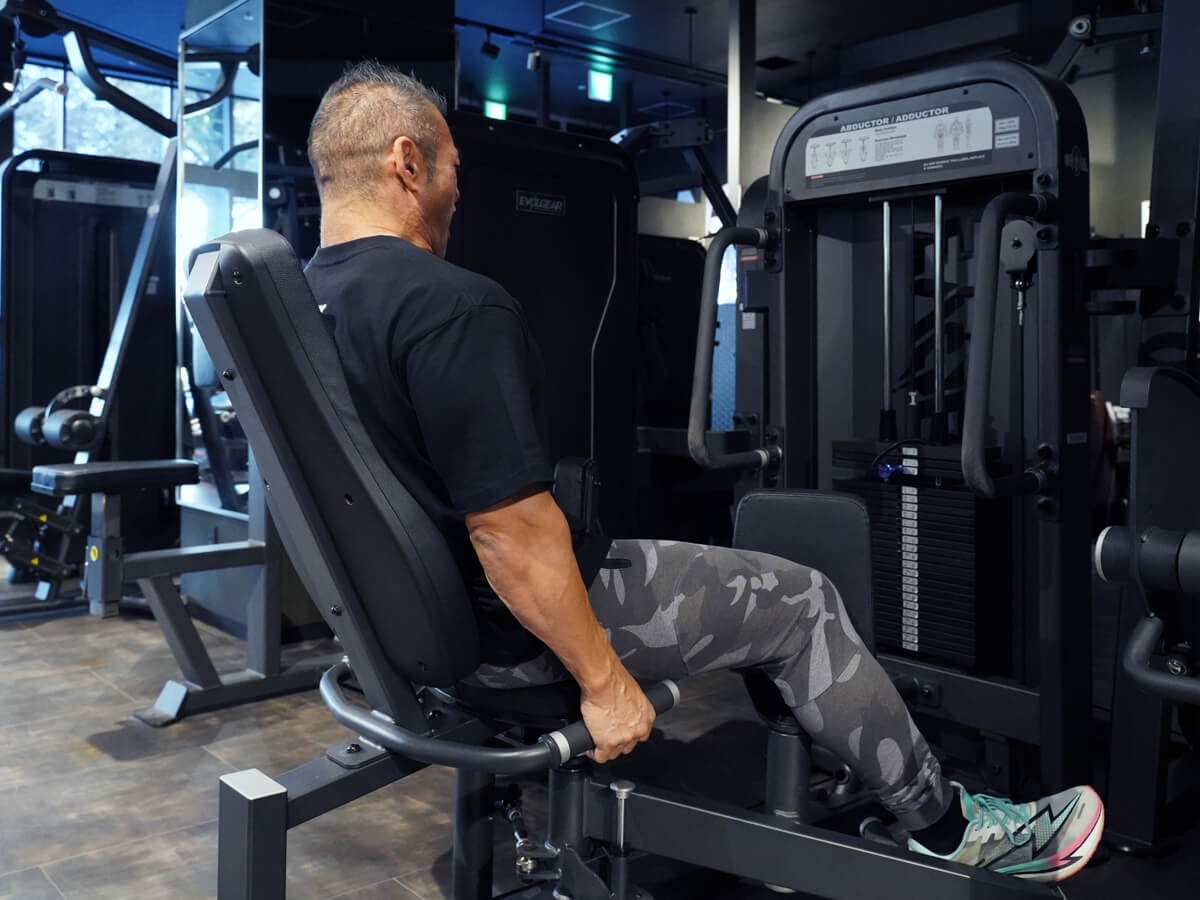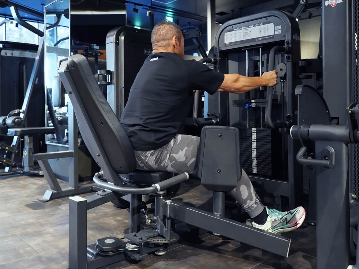 殿筋群(お尻)と内転筋(太もも内側)を集中的にトレーニングすることができます。足を乗せるアームの位置と膝パッドの向きを調整することにより、この1台でアブダクターとアダクターの2種類のトレーニングを実施することが可能です。