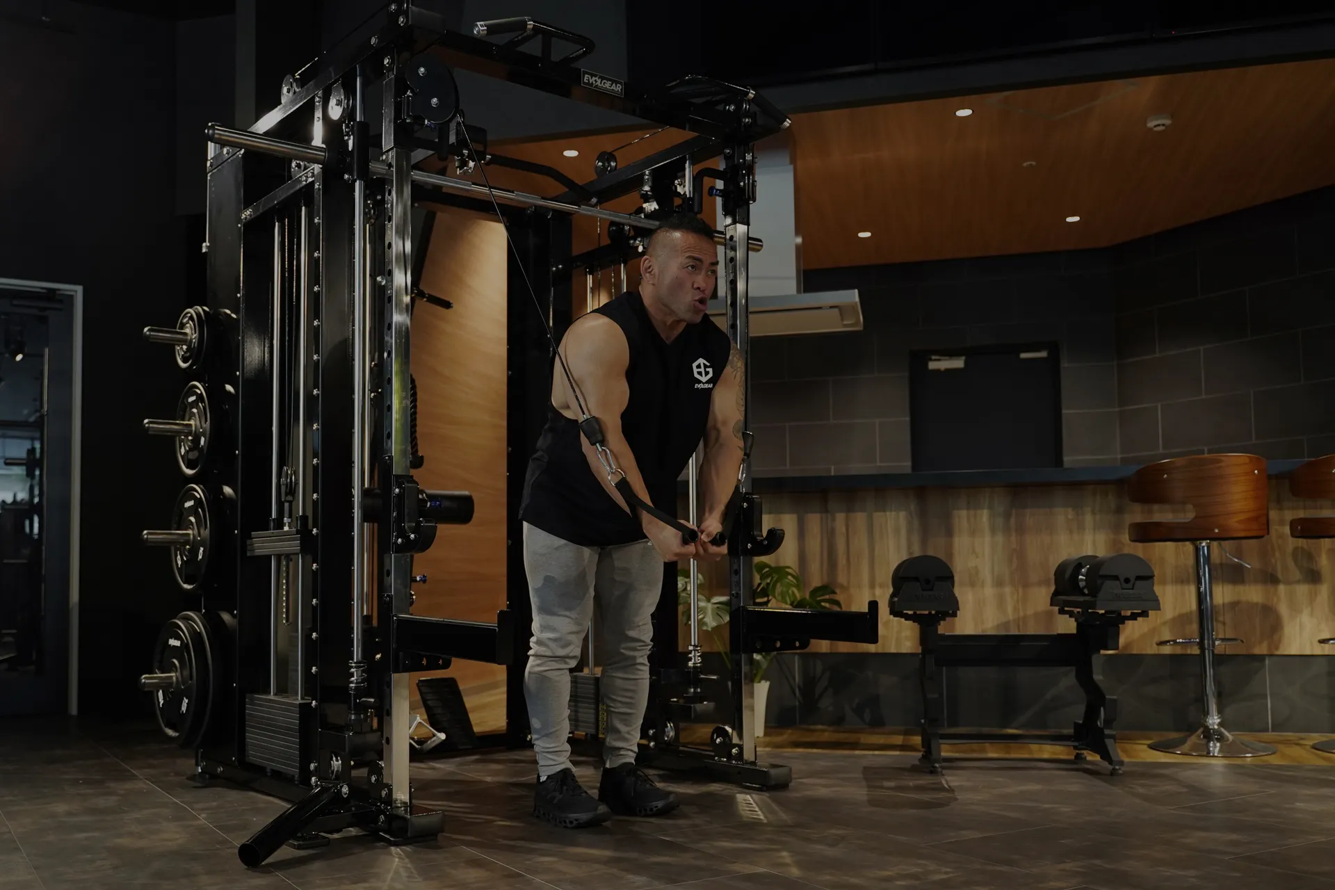 1台で30種目以上のトレーニングが可能。ハイロープーリー・ケーブルマシン・レッグエクステンション・チェストプレスが1つになったマシン。アームやケーブルの角度を調整する事でアプローチする箇所の変更が出来、様々な種目に応用可能。洗練されたデザインで、ホームジムからパーソナルジムでも使用可能です。