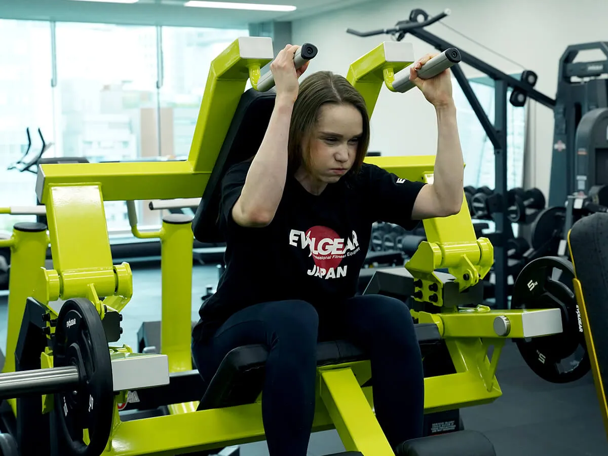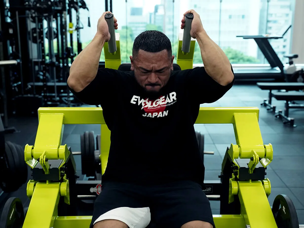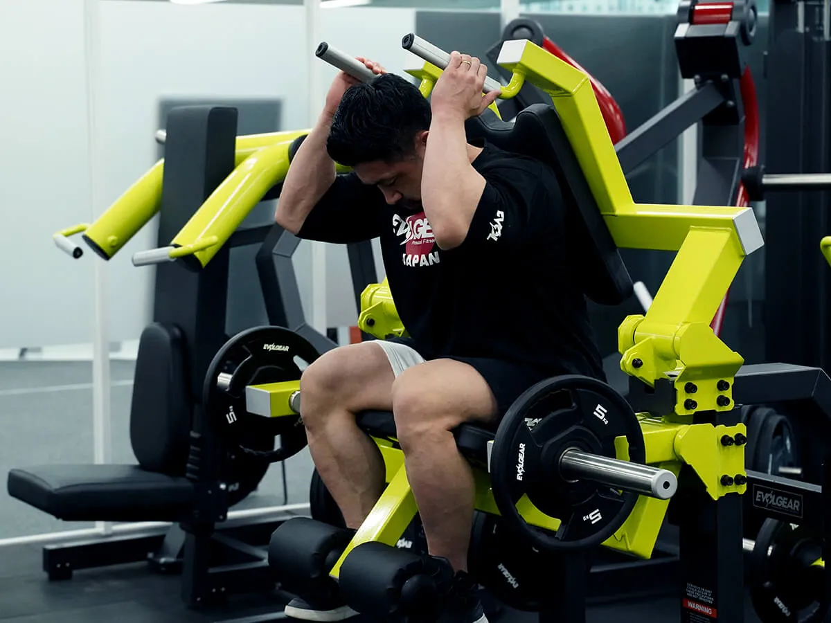 このアブドミナルクランチはポジションが安定しているので、初心者でも上級者でもとても簡単にトレーニングできるマシンです。実際にトレーニングすると、上からも下からもしっかりと刺激がかかっていて、腹筋の上下に確実にアプローチできているという印象でした。マシンの軌道もかなり広いところからスタートできるので、ストロークが長く、もれなく腹筋を全部使えるマシンです。グリップはEVOLGEARの製品独自の握りやすく、手に優しいグリップでとてもトレーニングしやすいです。また、このマシンはプレート式のマシンなのですが、初心者であればプレートを装着しなくてもマシンの初期重量だけでかなり腹筋に負荷がかかるので、プレートが少なくてもしっかり筋肉に刺激を与えられる初心者には特にオススメなマシンです。