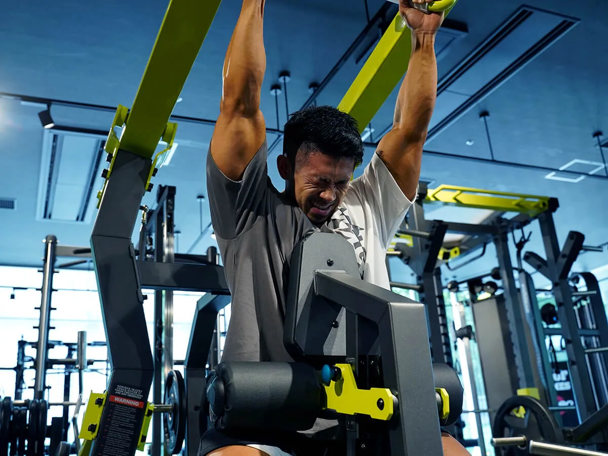 アームを斜め前方から引く事により、ラットプルダウンとは違う刺激を背中に与えることができるマシンです。またシートのポジションを変える事により、上背部から下背部まで鍛える部位を変える事が可能です。
