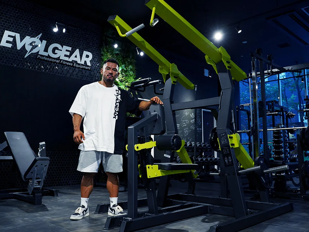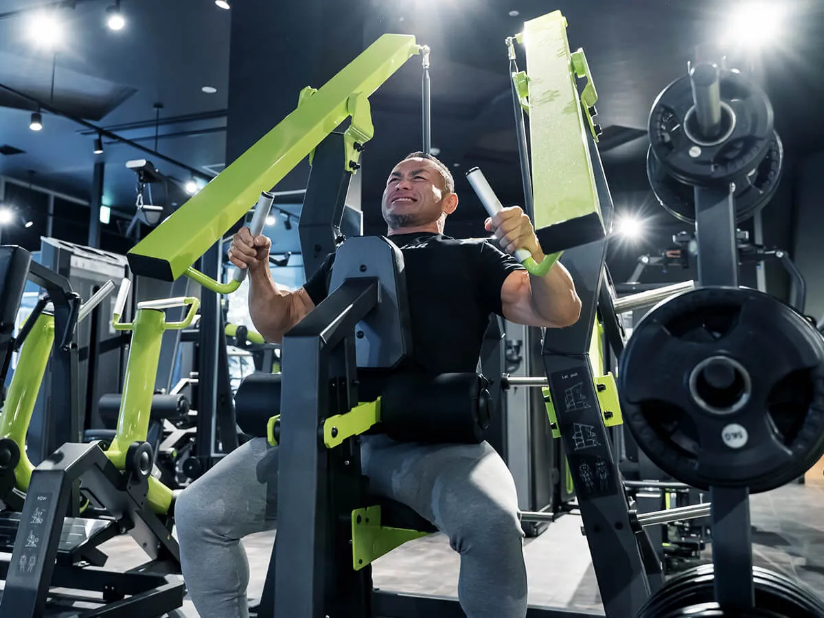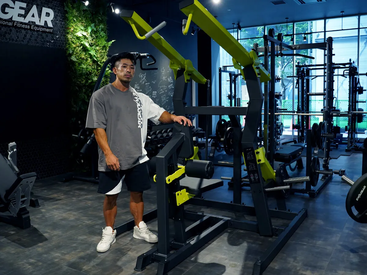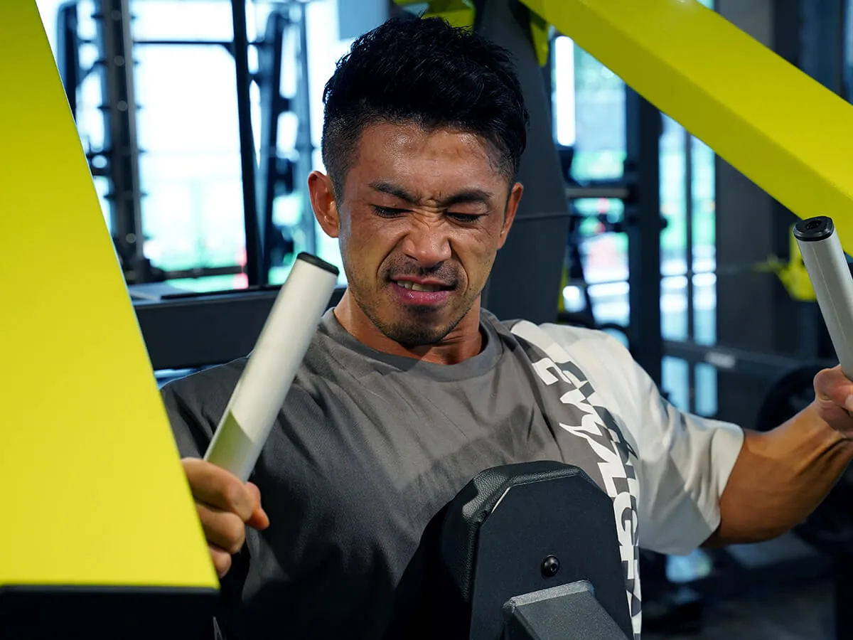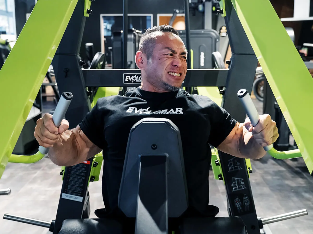 自分のトレーニングやパーソナルトレーニングのときに困っていた点として、背中の上「大円筋」に効かせたりとか、それこそリア辺りの背中の広がりを出すトレーニングにハマっていた時、ローイングだったりナローロウとか色んなマシンを使っても背中の厚みを出すトレーニングは出来ても、広がりを出すトレーニングやマシンはなかなか少ないんです。今回、EVOLGEARのハイロウを触った時、最初は「あ…収縮しきれてないな」って思ったんですけど、途中から「狙ってるところが違うんだ!」って気づいたので、背中の真ん中に効かせるというよりは背中の広がりを出すトレーニングにふさわしいマシンかなと感じました。セットの組み方としては最初は肩・腕で引いて、その後は両手で絞めるというセットがピッタリ。私好みのマシンです。