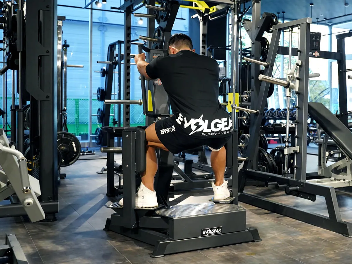 これは女性には大人気のマシン!もちろん男性もコンテストに出るような選手は大臀筋までトレーニングをやり込む必要があるよね。通常のアブダクションマシンは座って行うトレーニングが多いんだけど、このマシンはそれを立って行うことによって大殿筋・中殿筋への刺激が抜けにくい仕組みになっている。また、膝の角度を変えることによって、自分で効かせやすい角度でトレーニングすることができる。そしてこの前方にあるバーも長めの設計になっているので、身長の高い人から低い人まで刺激が抜けずに、確実に効かせることができる素晴らしいマシンです。