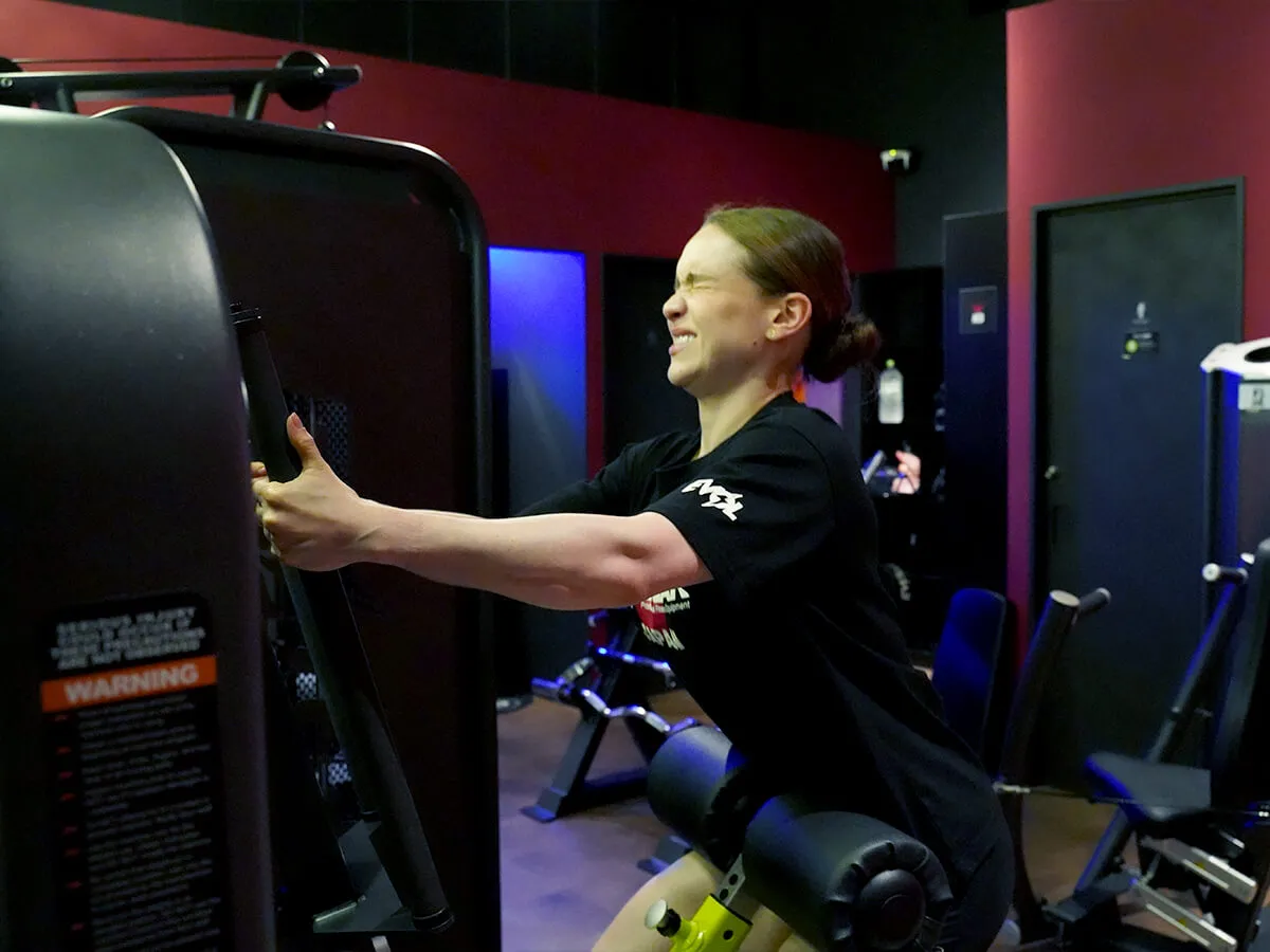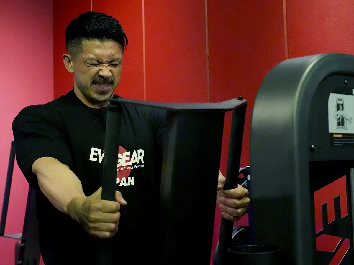このマシンは私が最も好きなマシンと言っても過言ではないマシンです。このマシンは身長と腰に合わせて柔軟に位置を調整できるので、女性から男性まで幅広い体格の人が快適にトレーニングできます。トレーニングする際に掴むグリップも幅が広く設計されていて、好きなポジションを掴んでトレーニングすることができるようになっています。グリップの触り心地も非常に良く、パッドに使われているレザーカバーも手触りが良く、気持ちよくトレーニングすることが出来ます。私がトレーニングしてみて感じたのは、ウェイトが斜め横に上がることで臀筋への刺激がダイレクトに入るので、もちろん男女問わず使えるマシンですが、特にヒップアップやビキニ選手を目指す方には最適なマシンだと思いました。一般的な仰向けになって行うヒップスラストには腰を痛める原因になったり、足のポジションが難しかったりというデメリットもあります。その点このマシンは腰への負担が少なく、ポジションを調整するのも容易なので、初心者でも臀筋の刺激を感じやすいオススメのマシンです。
