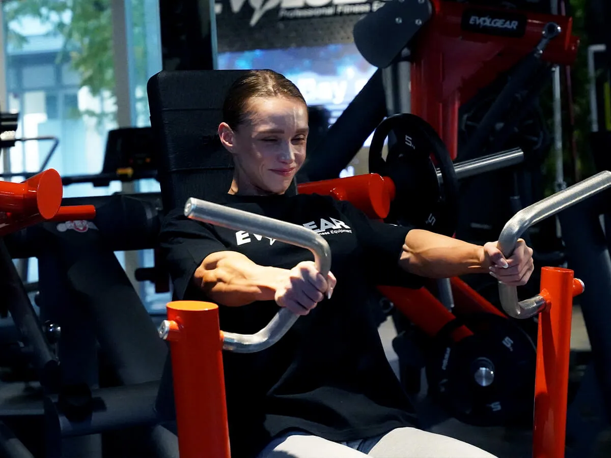 デクライン系のマシンは、日本のジムではなかなか見かけることのない非常なレアなマシンですので、私にはとても新鮮で初めて使ったときはテンションが上がりました。男性はもちろん女性もいろんなアングルから胸部を鍛える必要がありますので、このマシンがあるとありがたいなと思いました。グリップはとても滑りにくいのでしっかり握って、しっかり筋肉に負荷や刺激を入れることができます。またシート調整は8段階もあるので、男性も女性も色んな体格の方が使えるようになっています。そしてフットペダルがついていて無理なくスタートポジションをセットすることができ、最初のレップも安全にプレスすることができます。怪我予防にも配慮されている、どんな方にとっても優しいマシンです。