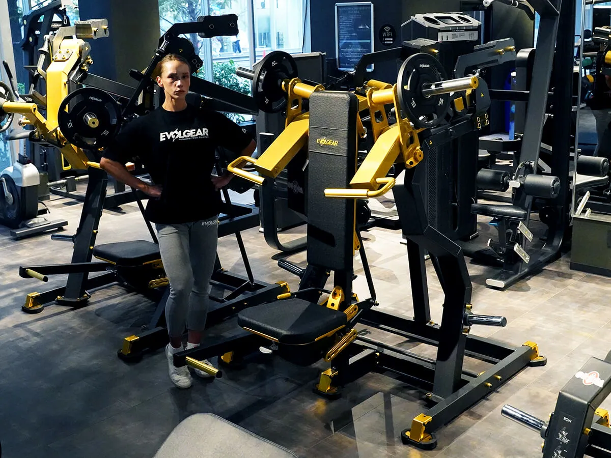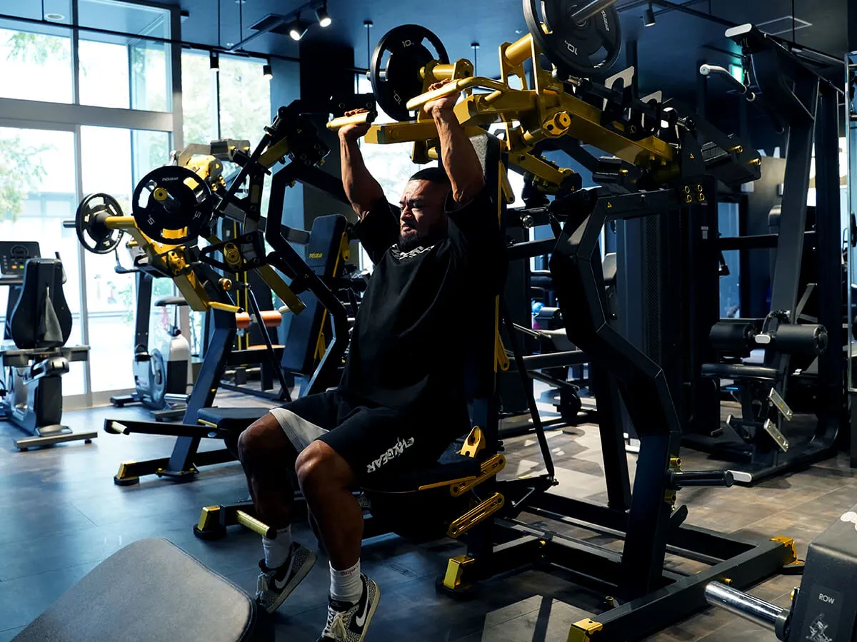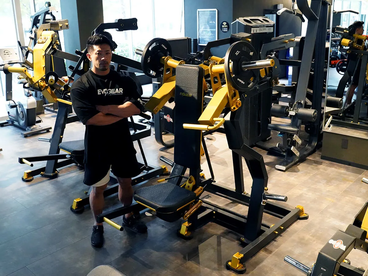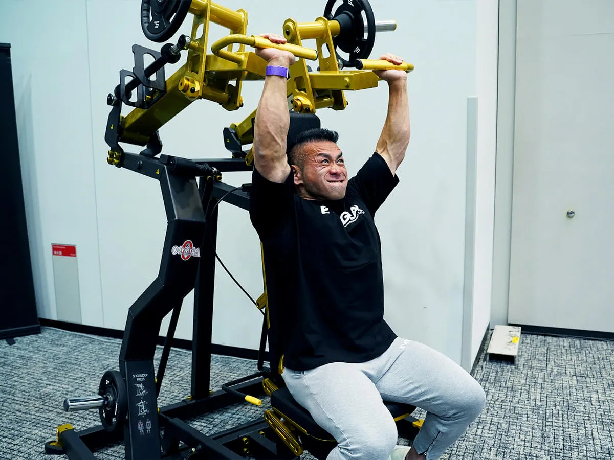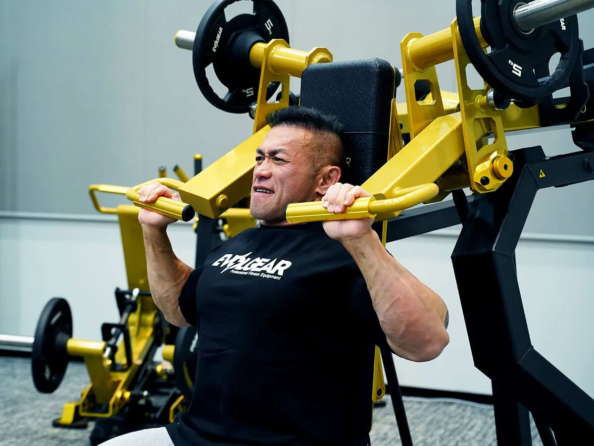 このショルダープレスは、まずZシリーズの共通点であるフットペダルがあることによりアームが手前に押し出されるため、関節を傷めずにスタートポジションを作りやすい点が良いと思いました。そしてウェイトの負荷が垂直にかかることでしっかり収縮と伸展をかけられるので、負荷が抜けないという点もとても良いですね。グリップはファットグリップになっているので使いやすく、掴んだときの感触も手に優しい感じです。背面と座面シートはどちらも調節が可能なので、どんな体型の方でも同じようにマシンが利用でき、トレーニングを楽しめると思います。Zシリーズは共通してデザインが非常にかっこよくて、シートの素材感・質感も自分好みなので、そういったマシン自体のビジュアルの良さもきっとモチベーションに繋がると思います。