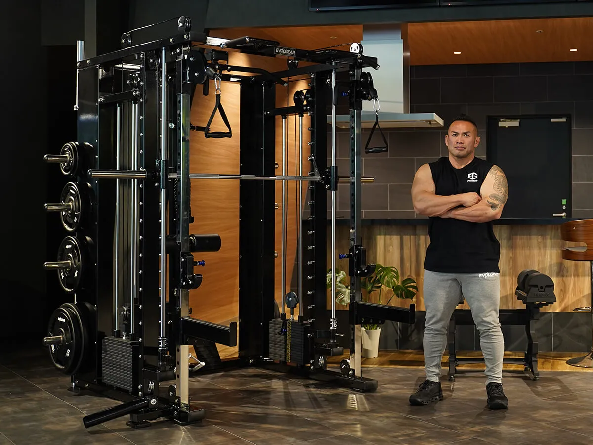 ハーフラック・スミスマシン・ハイロープーリー・ケーブルマシンが一つになった、ホームジム・パーソナルジムマシンの決定版。