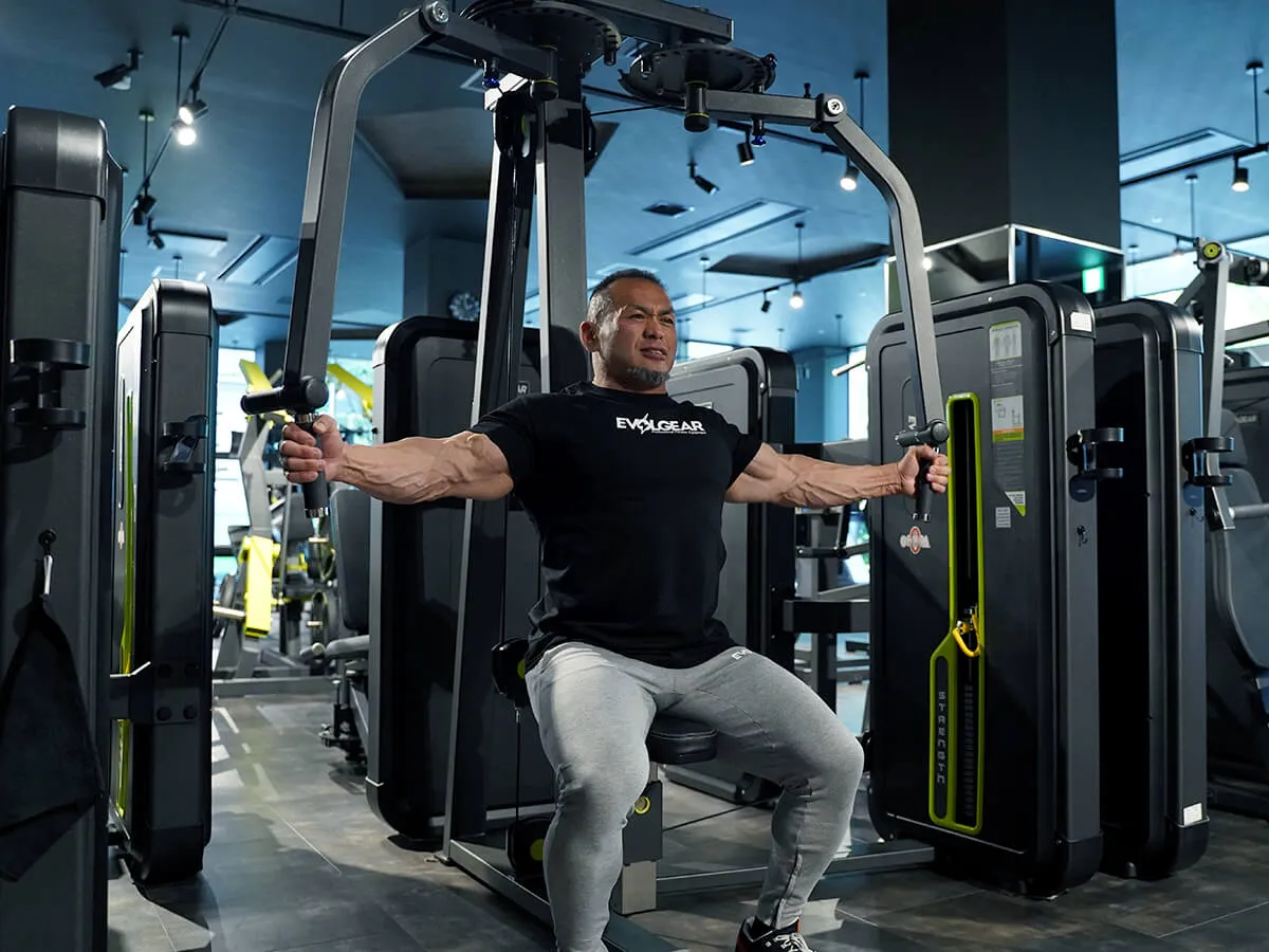 三角筋の後ろと大胸筋の両方をターゲットにできるマシンです。2つが一緒にできるマシンにも関わらず、どちらも十分に収縮とストレッチを感じることができます。後ろ向きも前向きもどちらも刺激の入り方がバッチリで、筋繊維が最後まで収縮するという感覚を感じることができました。そしてアームの可動域をピン式で変えることができるので、体格に合わせてハンドルの位置を合わせることができるのが便利だと感じました。グリップに関しては若干ファットグリップ気味になっていて、しっかり握ることができるのでこれも筋肥大につながる良いポイントです。またウエイトスタック式になっているので、ドロップセットやスーパーセットでの最後の追い込みもやりやすい。重量変更でプレートを付け変える手間もないので、減量末期には非常に助かります。みなさんに試していただきたいオススメのマシンです。