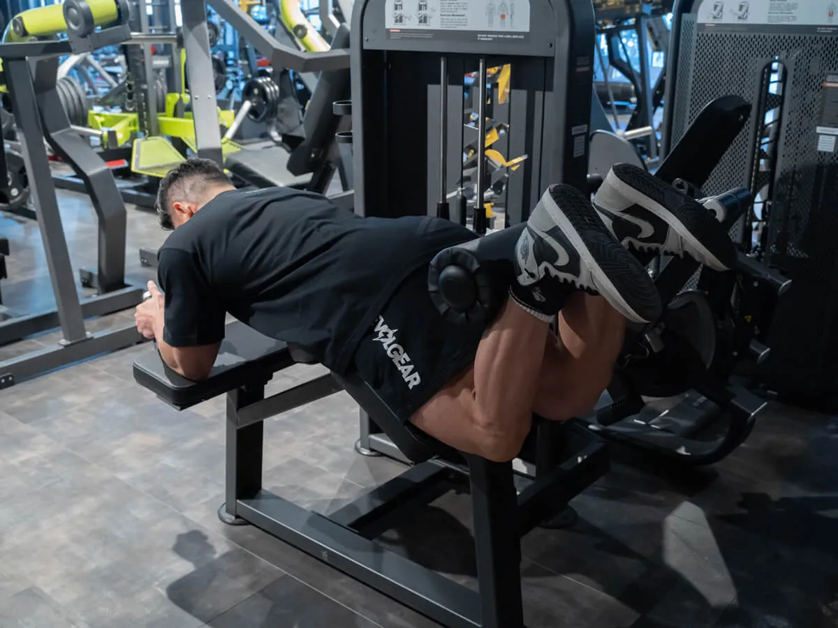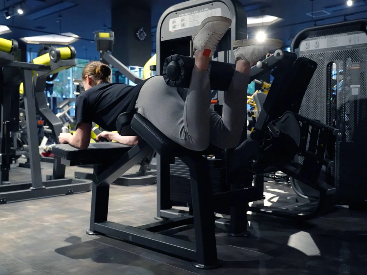ハムストリング、いわゆる太ももの裏を鍛える代表的な種目です。前側の筋肉は鍛えやすいけれど、裏側は疎かになりがち。だからこそ、このマシンは非常に重要になります。特徴的なのは腰への負担の少なさ。三角形のサポート構造によって、膝を曲げる動作でも腰が反らず、無理なく動作できます。これは腰を痛めやすい人にとっても安心材料になります。さらに、身長に応じてパッドの位置を前後に調整でき、体を安定させるためのバーも備わっている。こうした細かい配慮があることで、正しいフォームでしっかりハムストリングに効かせられるんです。ウェイトはスタック式なので、初心者や女性でも扱いやすく、上級者にとってもスムーズに重量を変えながら追い込める。まさに基本にして必須のマシンと言えますね。
