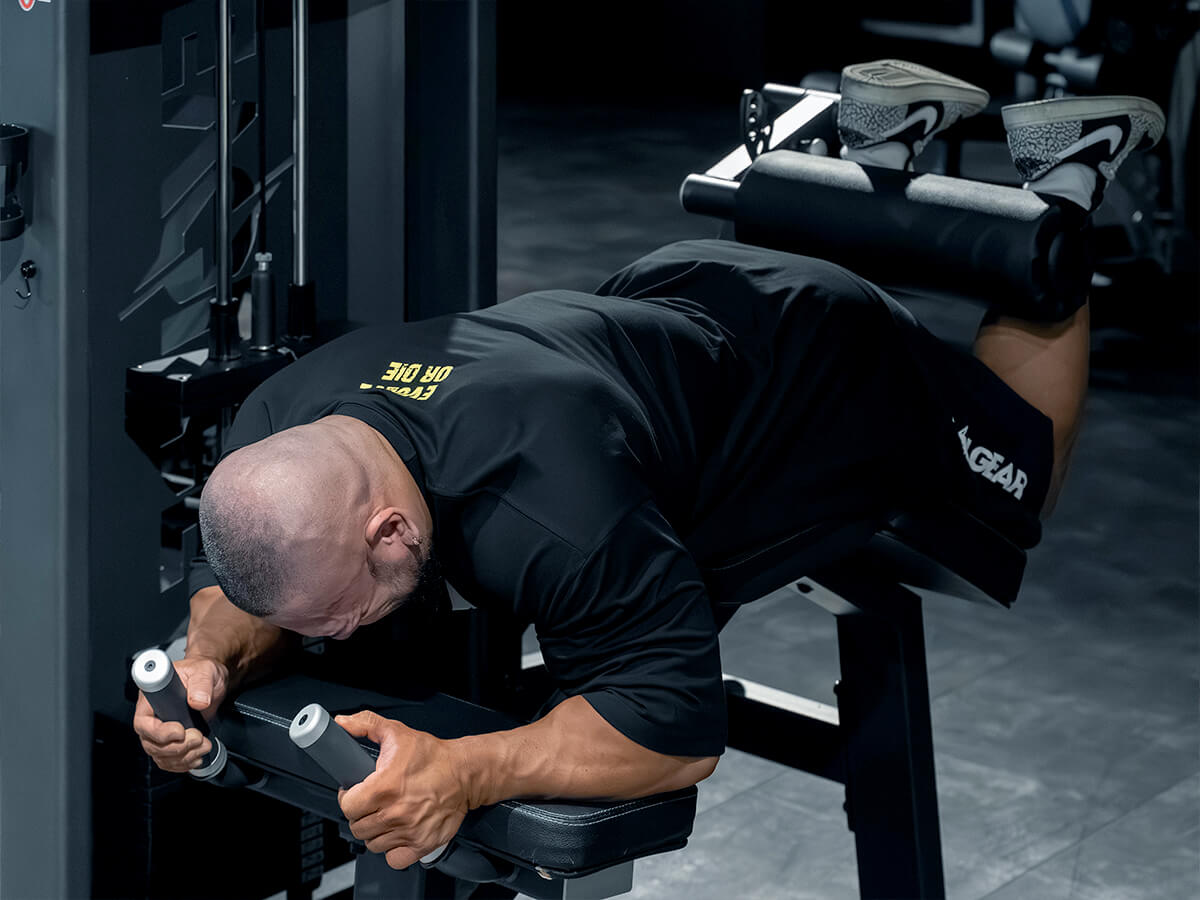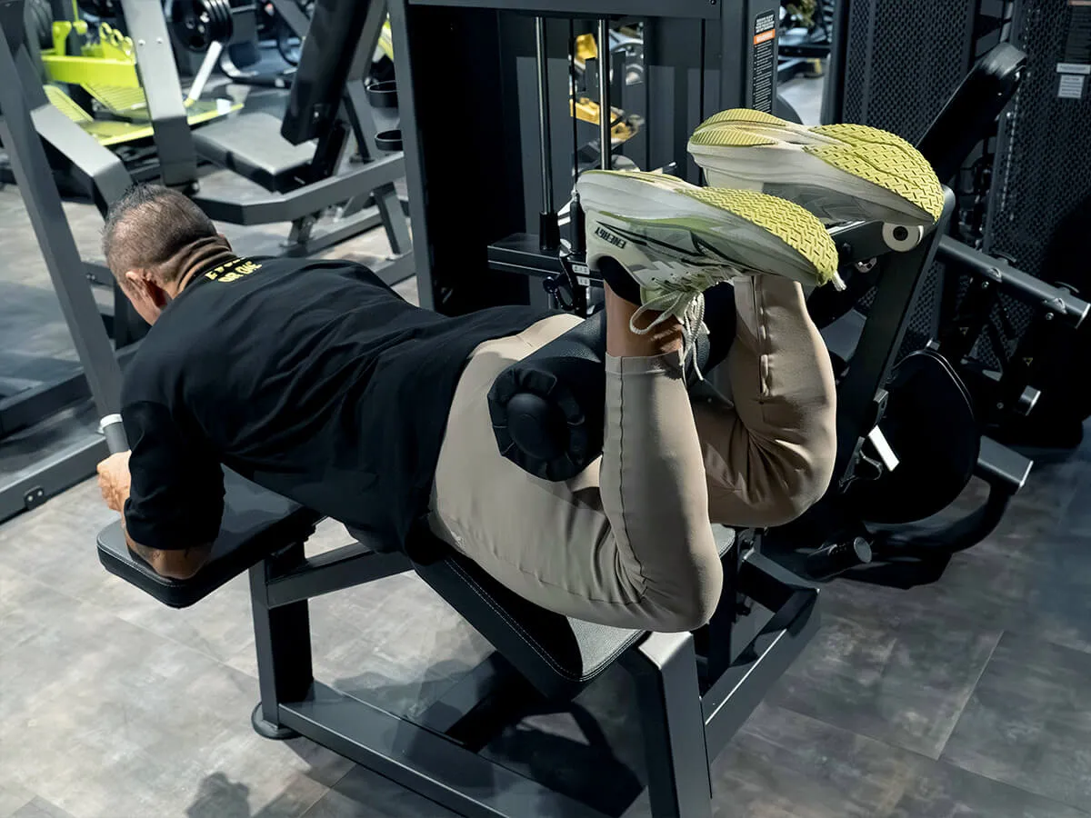 レッグカールを伏せて行うことにより、腰への圧力をなくし快適な姿勢でハムストリングの筋肉を強化できます。 また軌道が固定されているので適切なフォームでトレーニングが行えます。