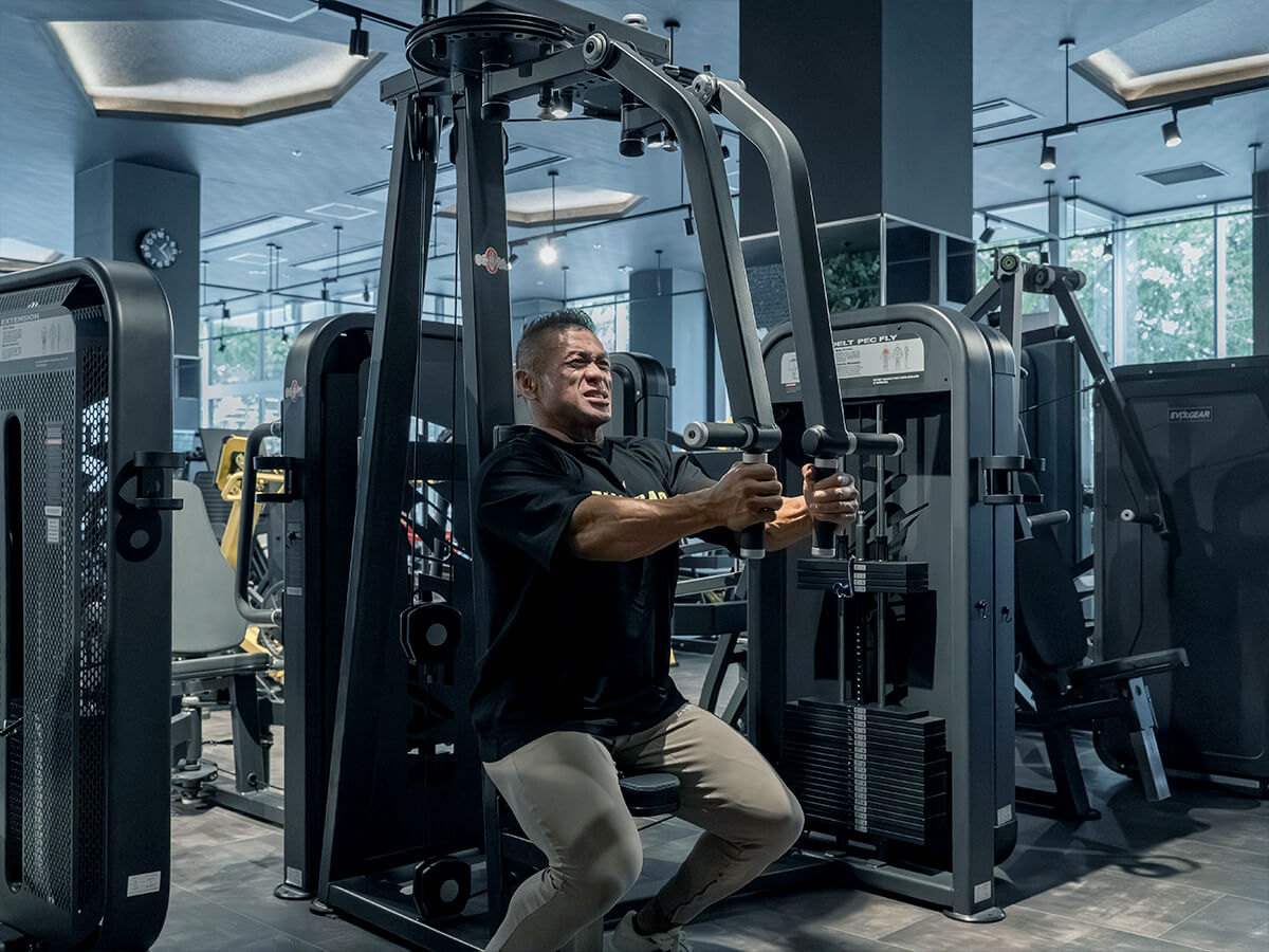 大胸筋(胸)と三角筋(肩)後部を効果的に鍛えることができます。可動域の広いアームは様々なユーザーの体格に合わせて設計されており、最適なポジションを提供します。 アームにそれぞれ取り付けられたピンでリアデルトフライとペックフライの切り替えを簡単に行うことができ、より効率的なトレーニングが可能です。
