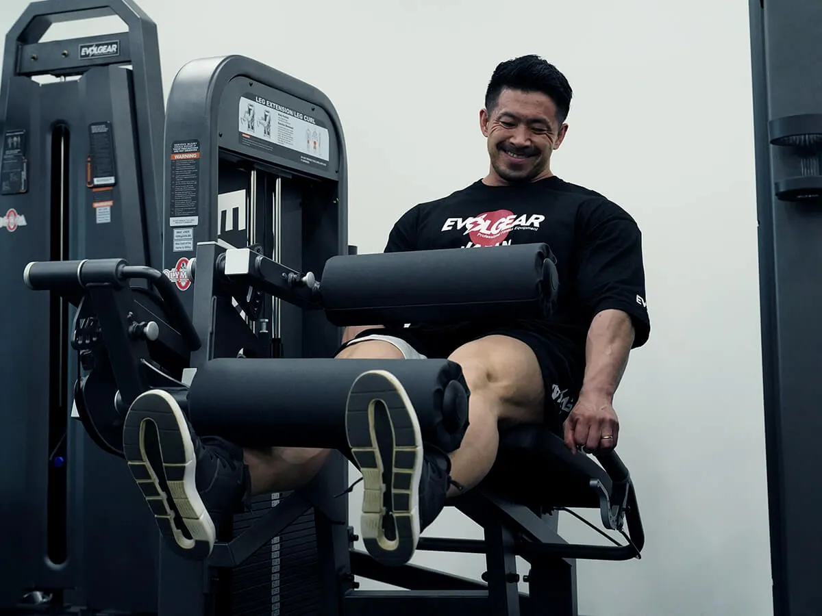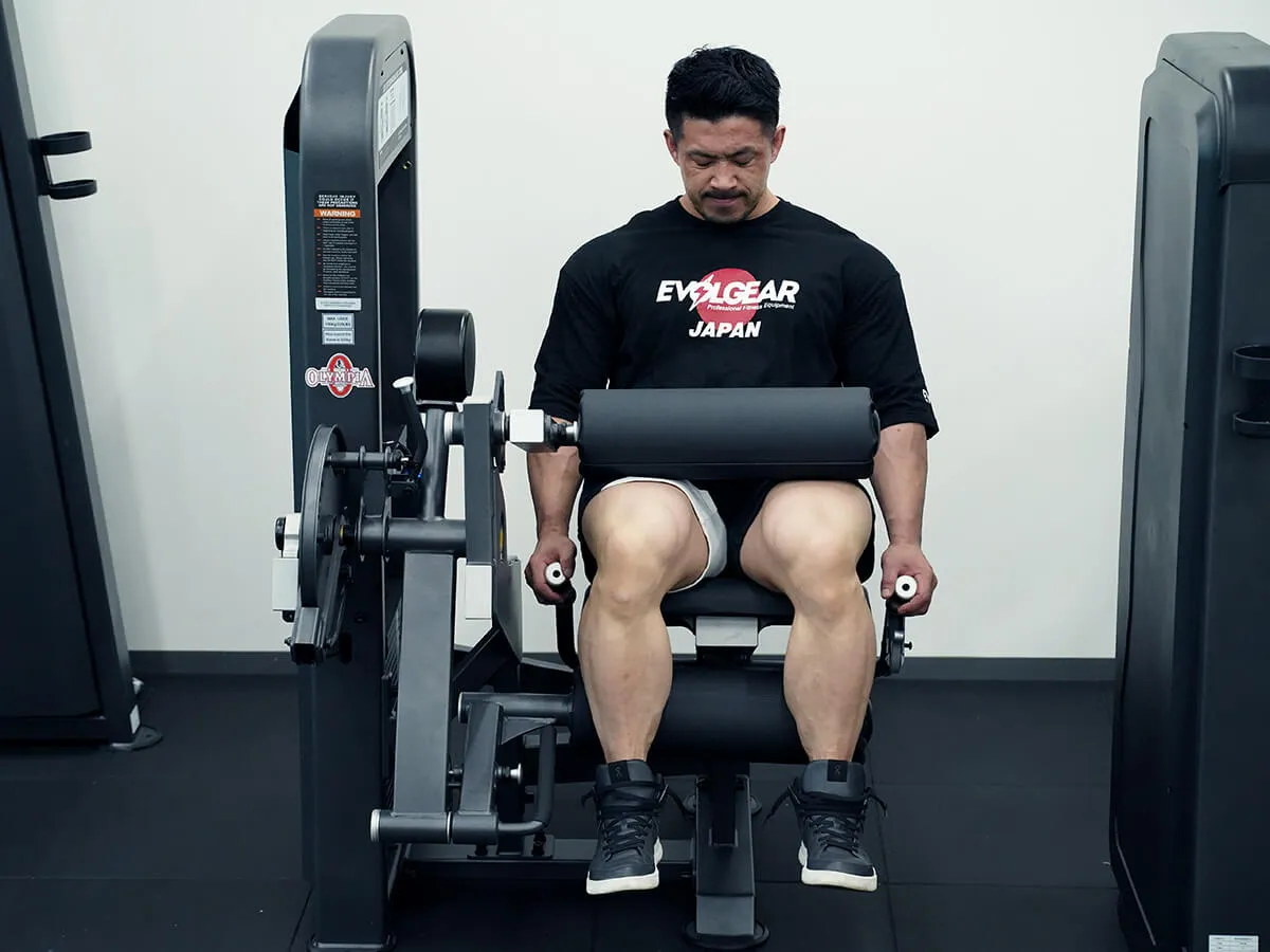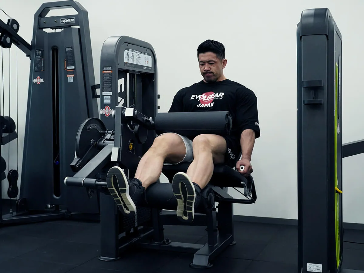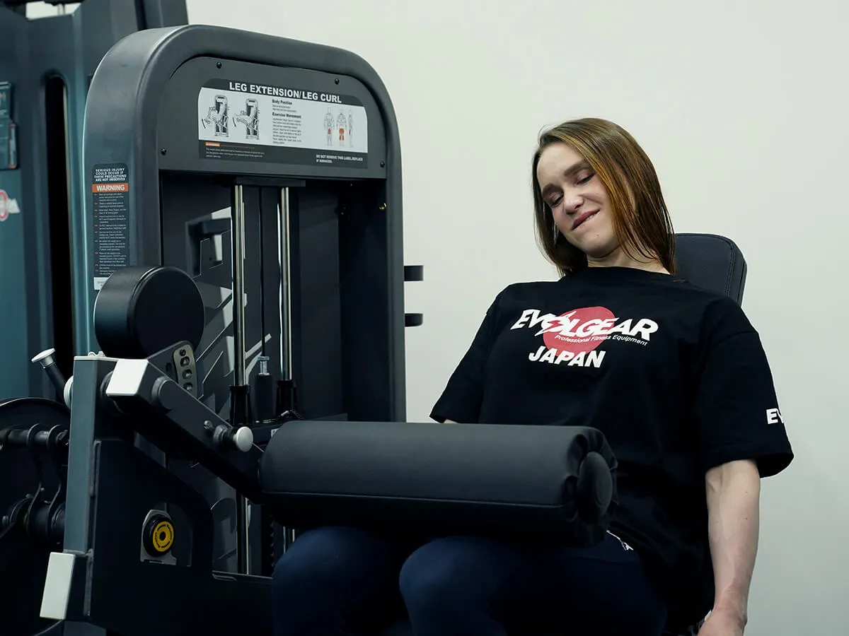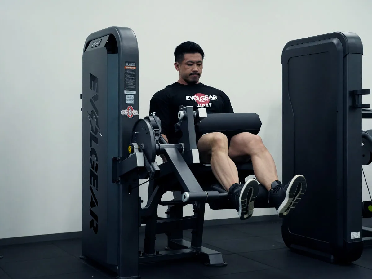 大腿四頭筋(太もも前側)とハムストリング(太もも裏側)を集中的にトレーニングすることができます。足元のパッドの動作開始位置を調整することにより、この1台でエクステンションとカールの2種目のトレーニングを実施することが可能です。
