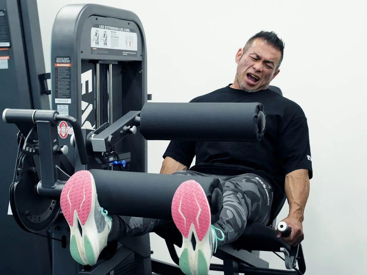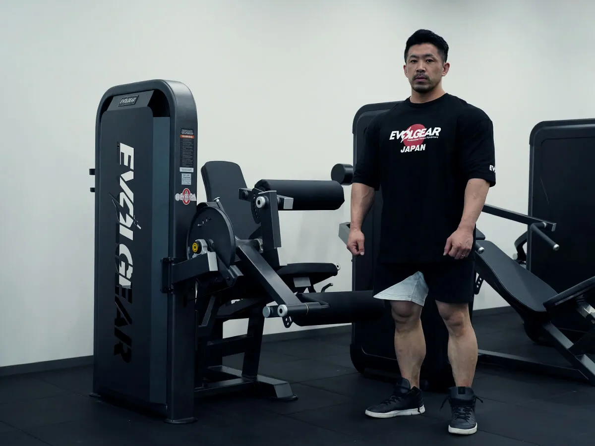 レッグエクステンション&カールは何と言っても2種類のトレーニングを1台に集約している点が素晴らしいところで、スペースの限られたジムやパーソナルジムであればこのマシンでバリエーションを増やせるので、ジムオーナー様は助かるんじゃないかなと思いました。使用感としてはプロ選手から見ても非常に良い刺激が入るマシンですが、特に初級者から中級者にとって最適なマシンだと感じました。またこのマシンは細かくポジション設定できる箇所が多いので足の長さや身長、負荷を掛けたい位置に合わせてアジャストできるところもポイントです。シートやグリップもとても良い手触りで、機能性を保ちつつマシンデザインもおしゃれな点も魅力の一つです。さらにこのマシンはウェイトスタック式なので、簡単にドロップセットができてウェイトを付け替える手間もなく、かなり効率的に脚のトレーニングができるマシンだと思いました。